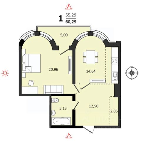 Продаётся 1-комнатная квартира 59,45 м2 от застройщика в жилом комплексе "Аккорд". О локации. ЖК "Аккорд" расположен в Северном районе вблизи важных транспортных узлов: ул. Трёхгорная, ул. Тихоокеанская и Воронежское шоссе. Это район уже с развитой инфраструктурой: два детских сада, две гимназии, медицинские учреждения, аптеки, почтовые и банковские отделения, магазины и кафе, Лемана Про, гипермаркет Самбери, кинотеатр и многое другое. В непосредственной близости расположены живописные парки, где можно насладиться прогулками на свежем воздухе и разнообразными развлечениями: парк Северный, аттракционы Вандерленд, уютный сквер Самбо-90, сквер Врачей и мемориальный парк Мира. Также неподалеку находится Приамурский зоосад им. В.П. Сысоева. О жилом комплексе. Состоит из двух домов высотой 25 этажей. На территории комплекса предусмотрена стильная и красочная детская площадка, которая станет настоящей радостью для маленьких жителей. Дизайн-проект подъездов продуман с особым вниманием к деталям, которые создадут уютную атмосферу. Для комфорта жителей в каждом подъезде предусмотрены 4 современных и безопасных лифта. О квартире. Кухня-гостиная и спальня с эркерной зоной Гардеробная Выход на большую лоджию Умный дом - - автоматическая передача показаний приборов учета, - автоматизированный доступ в места общего пользования ЖК с помощью беспроводной системы, не нужно даже доставать ключи из кармана - автоматическое открывание дверей - управление домофоном через приложение Отделка квартиры - предчистовая (White Box). Дополнительно вы можете приобрести услугу - чистовая отделка от застройщика. Данную квартиру вы можете приобрести по программе ТРЕЙД-ИН от alfa Development — это простой способ быстро и безопасно ПОМЕНЯТЬ ВАШУ СТАРУЮ КВАРТИРУ НА НОВУЮ! Девелопер проекта alfa Development Копания более чем с 16-летним опытом в строительстве 470 000 м2 строящихся и проектируемых проектов, 5 регионов присутствия. Продается 1-комнатная квартира 60 м2 в Хабаровском крае.