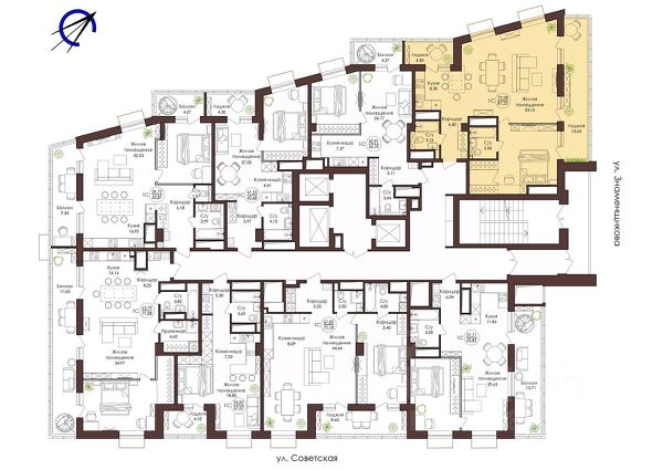 также в холле четыре скоростных лифта марки Mitsubishi, подземный паркинг, огорожена территория всего ЖК, детская и спортивная площадка. По всей территории жк ведется круглосуточное видео наблюдение.