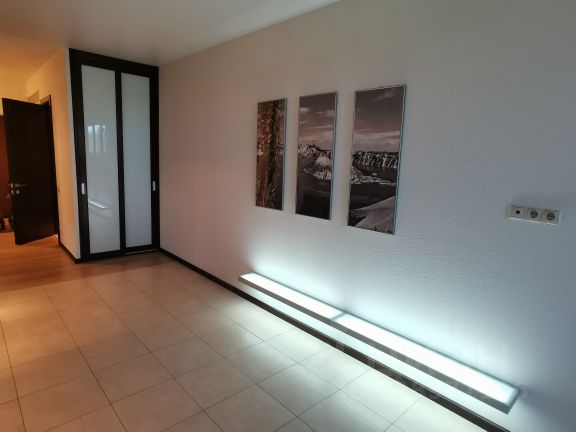 В отделке квартиры были использованы материалы от ведущих мировых фабрик (Италии, Испании, Швейцарии) Laufen (сантехника), Нирре (душевое ограждение), Arbonia (полотенчик), Keuco (аксессуары), Porcelanosa (плитка и керамогранит),