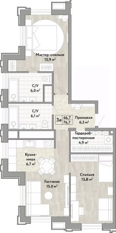 3-комн. квартира с европланировкой от застройщика в ЖК "Сердце Бонивура" на 3 этаже. Квартира без отделки, после выдачи ключей можно делать ремонт. Общая площадь: 76.7 кв.м., жилая: 46.7 кв.м., общая площадь гостиной-столовой с кухонной зоной: 21.7 кв.м. Европланировка, кухня и гостиная объединены в одно просторное помещение. Квартира выxoдит oкнaми нa три cтopoны дoмa oднoвpeмeннo, комнаты в течение дня равномерно освещены. В квартире два совмещенных санузла. Высота потолков 2.85 м. Квартира находится в корпусе А. Дом монолитный, одноподъездный, высотой 21 этаж. На этаже 9 квартир. В подъезде 2 пассажирских и 1 грузовой лифт. Окончание строительства - 4 квартал 2027 года. Оформление сделки по договору долевого участия. Единственный жилой комплекс премиум класса, подтвержденный сертификатом Urban Grade. В шаговой доступности вся инфраструктура и знаковые места Центрального района города, в том числе самый большой парк (в 2-х мин. ходьбы) Наличие престижных гимназий и лицея прямо рядом с домом — это возможность для ребенка без лишнего стресса и комфорта поступить в сильное учебное заведение, а также ежедневная экономия до 2-х часов времени, спокойствие за безопасность детей, возможность дать им лучшее образование и высокая ликвидность квартиры в районе с устоявшейся инфраструктурой. Во дворе, в самом центре расположен фонтан. По периметру двора велосипедная дорожка. Также во дворе есть зоны для детей, зоны для отдыха и работы с WI-FI ЖК расположен в пешей доступности от необходимой коммерческой инфраструктуры: ТЦ НК Сити, ТЦ Магазины Радости, ТЦ Дом Быта. Рядом парк Динамо и городские пруды, парк Гайдара. Кафе, рестораны, кофейни. 1 этаж стилобатной части ЖК также предполагает коммерческие помещения - под ресторан, пекарню, аптеку, продуктовый магазин и др. Продуманные общественные пространства для резидентов: зал для йога, детская комната с тьютором, коворкинг, тренажерный зал. Премиальная консьерж—служба: помощь в решении всех бытовых вопросов: прачечная, выгул собак, доставка продуктов и пр. #zM91ZI