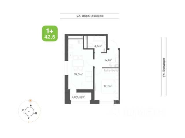 Зимние скидки! Выгода до 1,9 миллиона рублей. Цены от 7,2 миллионов рублей. Квартира 41,25 м2 свободной планировки с видами на Амур и Броско.