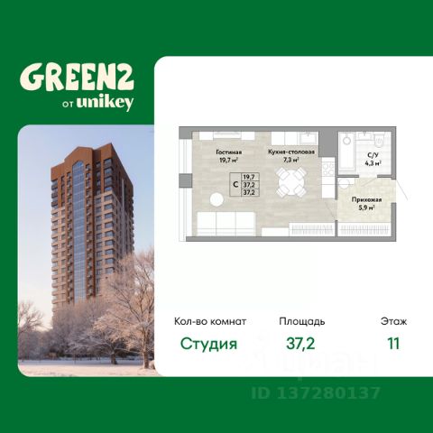 Зимние скидки! Выгода до 1,7 миллиона рублей. Квартира 43,06 м2 свободной планировки с видами на Амур и Броско.