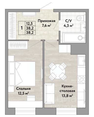 Классическая планировка однокомнатной квартиры с важными улучшениями; Эргономичная кухня с выходом на лоджию даст возможность организовать зоны готовки, приёма пищи и релакса; Гардероб в коридоре и гардеробная ниша в комнате позволит не тратиться на шкафы и комоды и освободиться полезную площадь; Жилая комната прямоугольной формы отлично подходит для расстановки мебели "под настроение"