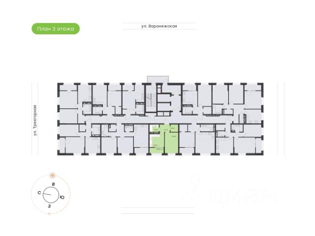 Современная однокомнатная квартира с функциональной планировкой • Холл 6,5 кв.м. с удобной нишей, где можно организовать гардеробную или мягкую зону; • Увеличенная кухня-гостиная 17,2 кв.м с двумя окнами для отдыха и общения; • Спальная комната с выходом на лоджию. Вид из квартиры открывается на ул. Воронежская; • Совмещенный санузел 4,3 кв.м; • Это отличный выбор для тех, кто ценит комфорт.