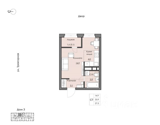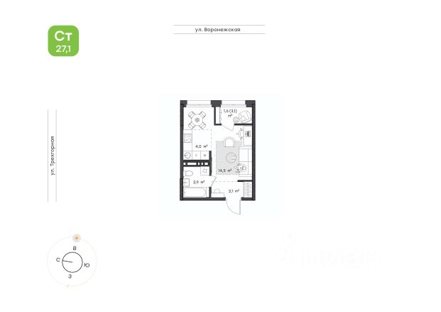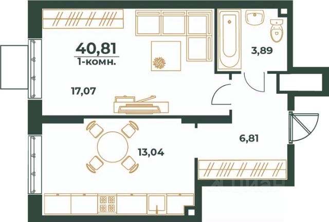 Компактная и функциональная студия для молодой семьи и людей, ценящих спокойную и уединённую жизнь. Кухня-ниша легко вместит всю необходимую технику для реализации ваших кулинарных фантазий. Гостиная позволит зонировать место для отдыха, учёбы и работы. Лоджия станет отличным местом для релакса.