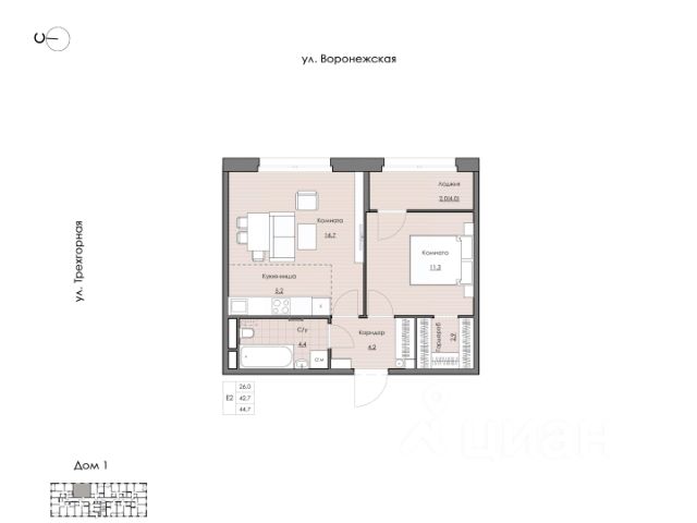 Дом расположен в границах ул. Воронежская-Победы, в зеленой зоне. Рядом новый тихий район частных семейных домов и ЖК Надежда. Получите индивидуальную скидку на эту квартиру в отделе продаж. А также до конца зимы действует акция отделка WhiteBox в подарок!