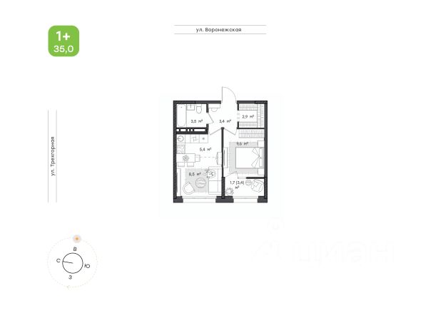 Дом расположен в границах ул. Воронежская-Победы, в зеленой зоне. Рядом новый тихий район частных семейных домов и ЖК Надежда. Получите индивидуальную скидку на эту квартиру в отделе продаж. А также до конца зимы действует акция отделка WhiteBox в подарок!