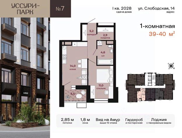 СТАРТ ПРОДАЖ р-н пл. Блюхера - тихий центр города. Уссурийский бульвар, школы, детские сады в 10 мин пешком. Планируемая сдача дома - 1 квартал 2028 года. Рассрочка 0% на первый взнос до 1 года без увеличения стоимости Выгода до 2,5 млн на старте продаж Просторная светлая 1-комнaтная кваpтира 36-41 м². Здесь спальня, кухня-гостиная, большой санузел, а также лоджия, которую можно оборудовать как зону отдыха или кабинет. Высокие потолки 2,85 - 3,30 м от стяжки пола, большие окна до 1,8 м и панорамные виды с лоджии - все это дает максимум света, легкости и свободного пространства. После 10 этажа открывается вид на Амур и потрясающие хабаровские закаты О ЖК: Архитектурная доминанта района. Концепция от известного архитектурного бюро PERGAEV BURO Высокие потолки 2,85-3,30 м и большие окна до 1,8 м Приватная территория под видеонаблюдением. Детская площадка, воркаут, гриль-зона, зона отдыха и догхаб с выгулом Дизайнерские холл и отделка в подъезде На первом этаже клубная гостиная для соседей, колясочная, лобби с мягкими зонами, гостевой санузел Подземный паркинг с лифтом от квартиры до машины и усилителем сигнала связи УЛУЧШЕННАЯ ЧЕРНОВАЯ ОТДЕЛКА: > Выровненные стены > Стяжка пола > Окна с откосами, подоконниками и фурнитурой > Сантехнические выпуски под установку оборудования > Горизонтальная система отопления > Подводка водоснабжения > Гидроизоляция в санузле > Распределительный щит для электропроводки > Системы вентиляции в кухонной зоне и санузле > Металлическая входная дверь Гардиан, которая не требует замены > Балкон с витражным остеклением > Индивидуальные счетчики на все коммуникации Предчистовая отделка с электрикой по всей квартире - 16 000 ₽/м² Девелопер КЕТОМ - 16 лет на рынке Хабаровска, 18 сданных объектов, безопасный эскроу-счет