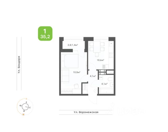 солнечная, площадью 40,3/16,4/9,1, просторная лоджия остеклена, дом 2013 года постройки.