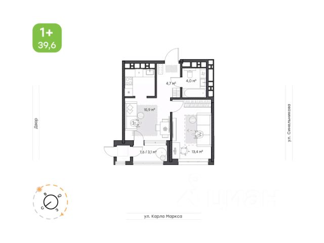 Зимние скидки! Выгода до 1,9 миллиона рублей. Цены от 7,2 миллионов рублей. Квартира 39,24 м2 свободной планировки с видами на Амур и Броско.
