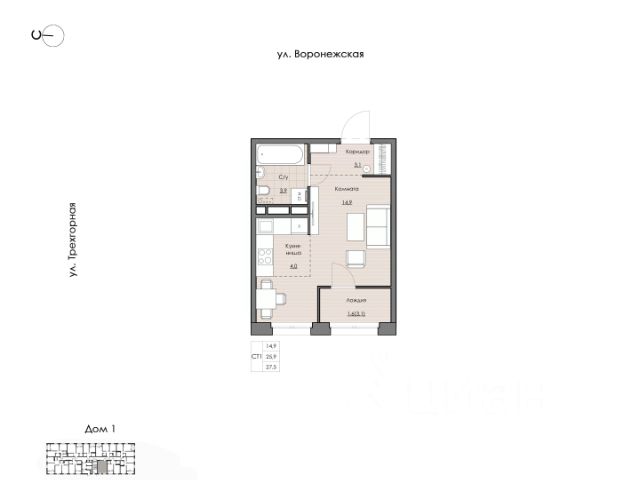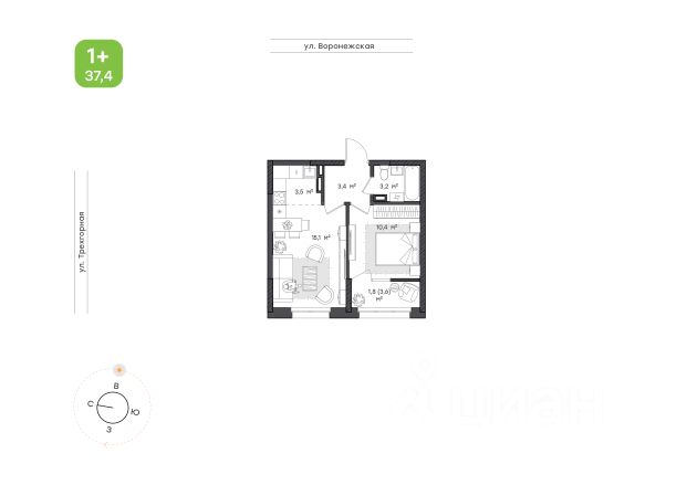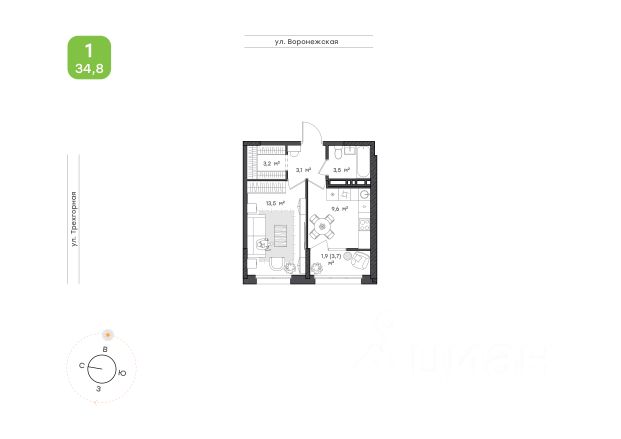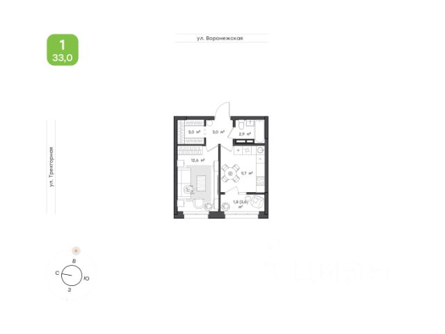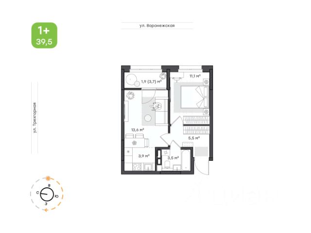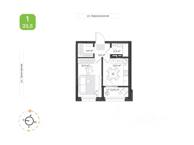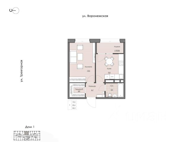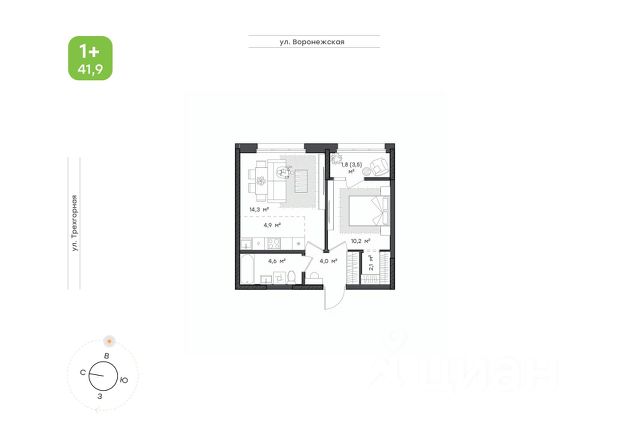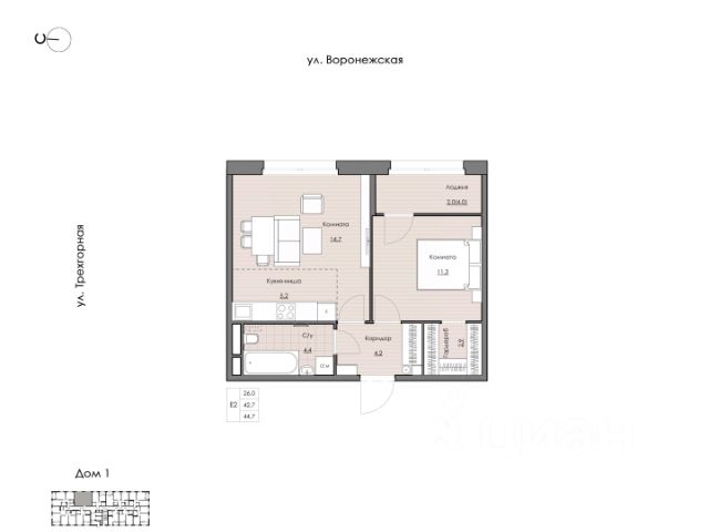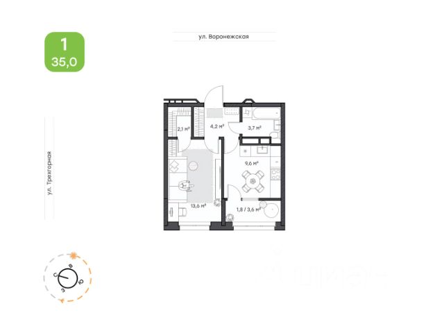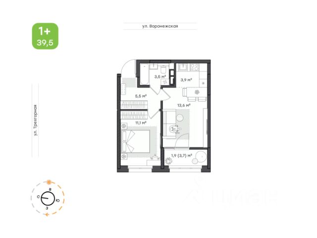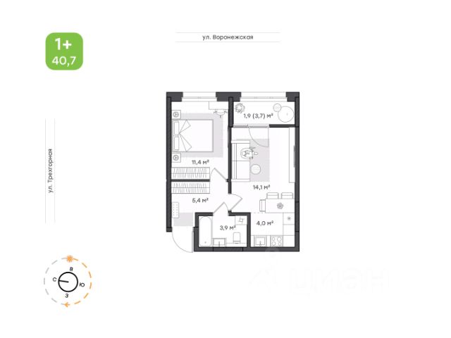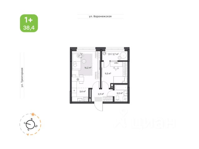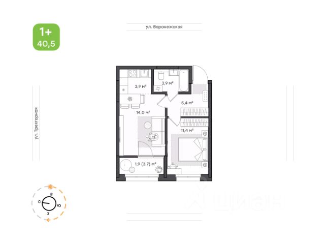 Классическая планировка однокомнатной квартиры с важными улучшениями; Оргономичная кухня с выходом на лоджию даст возможность организовать зоны готовки, приёма пищи и релакса; Гардероб в коридоре и гардеробная ниша в комнате позволит не тратиться на шкафы и комоды и освободиться полезную площадь; Жилая комната прямоугольной формы отлично подходит для расстановки мебели "под настроение"