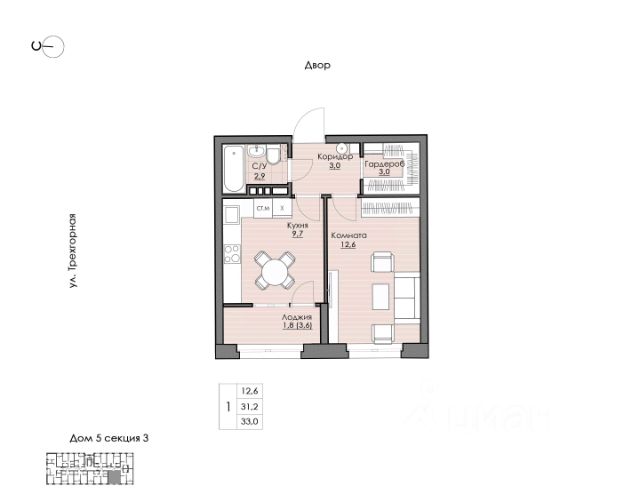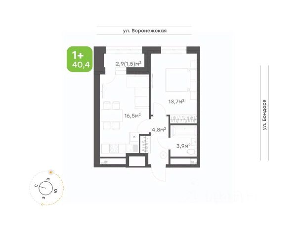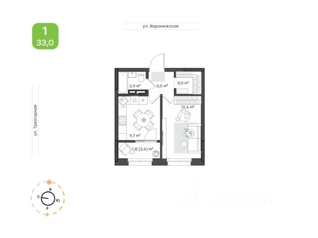Продам 1-комнатную квартиру общей площадью 54,3 кв.м. на 4 этаже 4-этажного монолитного дома 2014 года постройки в ЖК Надежда.