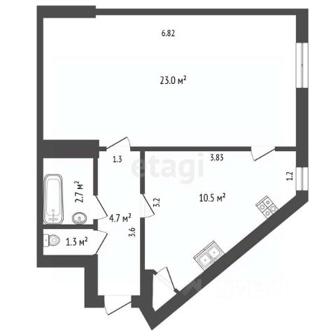 Комфортная 1-комнатная квартира 35 м². Здесь отдельная спальня, кухня-гостиная, санузел и балкон с панорамным видом, который можно оборудовать как зону отдыха или рабочее место.