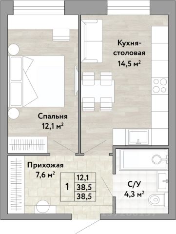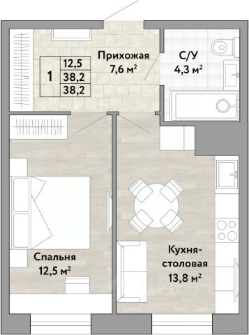 1-комн. квартира от застройщика в ЖК "Green 2" на 7 этаже. Квартира без отделки, полностью готова к ремонту. Общая площадь: 38.2 кв.м., жилая: 12.5 кв.м., площадь просторной кухни-столовой: 13.8 кв.м. Все окна выходят на одну сторону. В квартире один совмещенный санузел. Высота потолков 2.7 м.