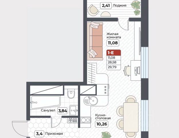 ЖК "Нордик": 1-комнатная квартира Площадь — 42,62 м². Срок сдачи 5 дома — IV квартал 2025 г. Отделка — предчистовая. Адрес — г. Хабаровск, ул. Известковая, 32/1. Идеальная однокомнатная квартира существует, и она перед вами! Комфортной для жизни её делает продуманная планировка: — просторная прихожая 8,96 м² с местом для хранения вещей; — совмещённый санузел 3,69 м²; — большая кухня-гостиная 15,82 м²; — уютная спальня 9,11 м²; — огромная лоджия 10,8 м² с витражным остеклением. Инфраструктура: — на территории комплекса: спортзал, кофейня, магазины, аптека, пункты выдачи заказов; — в шаговой доступности: школы, детские сады, ТОГУ; — в 5 минутах живописный парк Северный. Условия покупки: — ДВ ипотека от 0,6% — Семейная ипотека от 4,6% — Trade In (обмен старой квартиры на новую) — Скидка за каждого ребенка — Скидка 2% для участников СВО