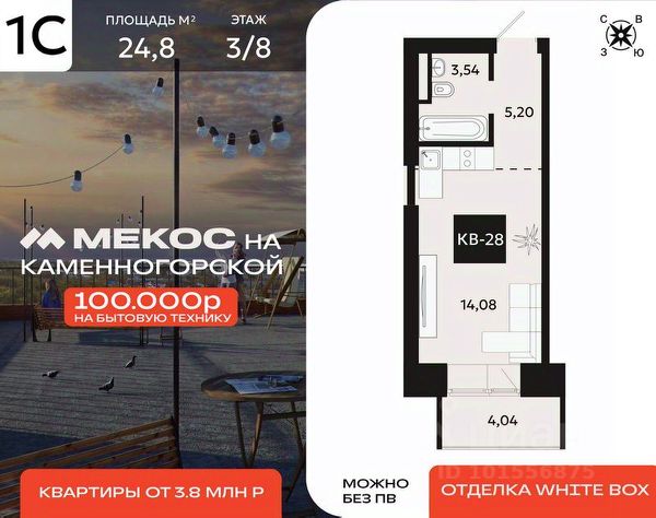 Квартира в отделке WhiteBox. Действует акция - квартира в ипотеку без первоначального взноса. В наших ЖК можно купить квартиру от 3.6 млн.р, а на студии сейчас подарок - 100 тыс. руб на покупку бытовой техники.