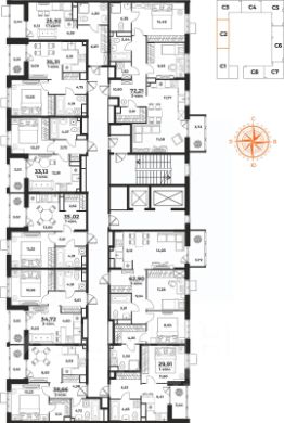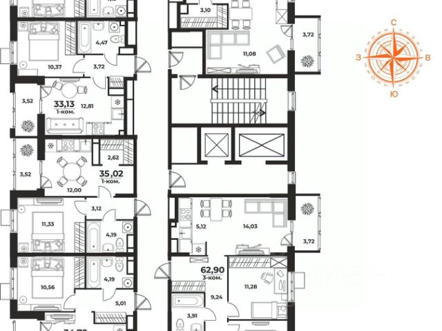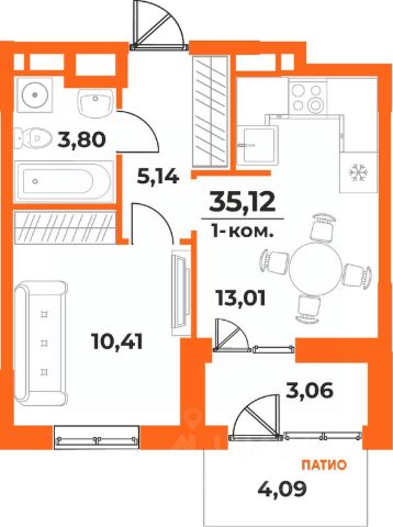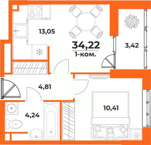 + общая площадь 31,8 кв.м. (без учета балкона), комната 16,9 кв.м. и просторная кухня 8,4 кв.м. (см. фото тех плана);