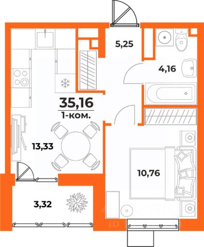 + имеется балкон с остеклением и внутренней отделкой, который подходит для отдыха, сушки белья и для хранения вещей;