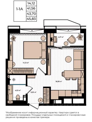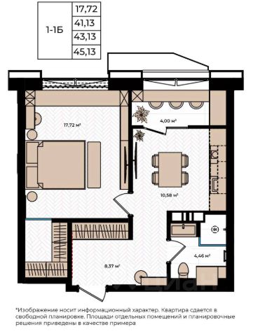 Зимние скидки! Выгода до 1,7 миллиона рублей. Квартира 39,68 м2 свободной планировки.