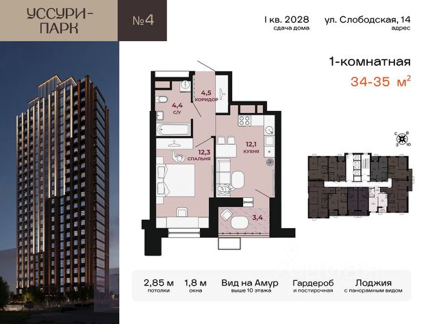 СТАРТ ПРОДАЖ р-н пл. Блюхера - тихий центр города. Уссурийский бульвар, школы, детские сады в 10 мин пешком. Планируемая сдача дома - 1 квартал 2028 года. Рассрочка 0% на первый взнос до 1 года без увеличения стоимости квартиры Выгода до 2,5 млн на старте продаж До конца ноября скидка 2% для участников СВО, медицинских работников, учителей, работников ОПК Светлая квартира-студия 24 м² на южной стороне Здесь кухня-ниша, жилая зона, большой санузел и балкон, который можно оборудовать как место отдыха. Такая эргономически правильная планировка позволяет разграничить кухню и спальное место и сэкономить на ремонте и меблировке. Высокие потолки 2,85 - 3,30 м от стяжки пола, большие окна до 1,8 м и панорамные виды на город с балкона - все это дает максимум света, легкости и свободного пространства. После 10 этажа открывается вид на Амур и потрясающие хабаровские закаты Идеальный вариант для инвестиций. Средняя стоимость аренды - от 50 000 руб/мес, среднесуточная - от 3 500 руб О ЖК: Архитектурная доминанта района. Концепция от известного архитектурного бюро PERGAEV BURO Высокие потолки 2,85-3,30 м и большие окна до 1,8 м Приватная территория под видеонаблюдением. Детская площадка, воркаут, гриль-зона, зона отдыха и догхаб с выгулом Дизайнерские холл и отделка в подъезде На первом этаже клубная гостиная для соседей, колясочная, лобби с мягкими зонами, гостевой санузел Подземный паркинг с лифтом от квартиры до машины и усилителем сигнала связи УЛУЧШЕННАЯ ЧЕРНОВАЯ ОТДЕЛКА: > Выровненные стены > Стяжка пола > Окна с откосами, подоконниками и фурнитурой > Сантехнические выпуски под установку оборудования > Горизонтальная система отопления > Подводка водоснабжения > Гидроизоляция в санузле > Распределительный щит для электропроводки > Системы вентиляции в кухонной зоне и санузле > Металлическая входная дверь Гардиан, которая не требует замены > Балкон с витражным остеклением > Индивидуальные счетчики на все коммуникации Предчистовая отделка с электрикой по всей квартире - 16 000 ₽/м² Девелопер КЕТОМ - 16 лет на рынке Хабаровска, 18 сданных объектов, безопасный эскроу-счет
