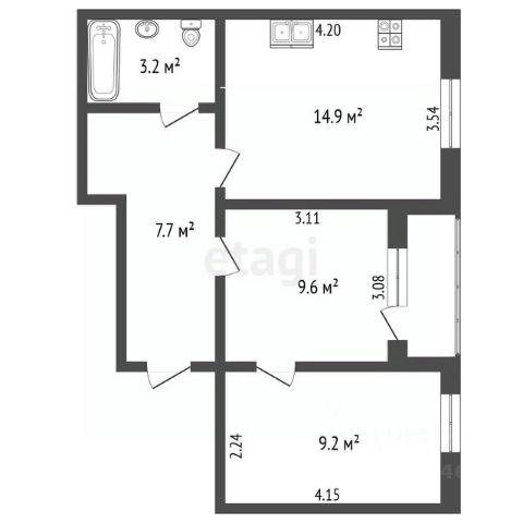 • ✅ Объект наибольшей площади: 55,3 м²