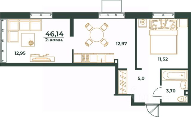Просторная 2-комнатная квартира. • Вместительный коридор 8,2 кв.м. с зоной хранения позволит удобно разместить вещи; • Классическая кухня с местом для обеденной зоны станет прекрасным местом для уютных вечеров; • Светлая гостиная с выходом на лоджию - идеальное место для отдыха; • Спальная комната с местом для хранения; • Совмещенный санузел 4 кв.м. подарит дополнительное удобство; • Прекрасное решение для современной жизни.