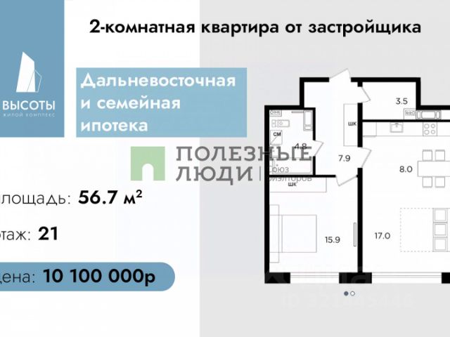 Предлагается к продаже 2-комнатная квартира в монолитном доме ЖК "Высоты". ДОМ СДАН - ключи на сделке. Прямая сделка с застройщиком без дополнительных комиссий - ПОДХОДЯТ ДАЛЬНЕВОСТОЧНАЯ И СЕМЕЙНАЯ ИПОТЕКИ. Предчистовая отделка whitebox: — шумоизоляция, полусухая стяжка пола: — улучшенная штукатурка на стенах - можно наносить финальное покрытие (обои/краска/декоративная штукатурка); — разводка электрики до мест подключения; — проложена трасса для кондиционера, на фасаде установлены корзины для внешних блоков; — установлены подоконные доски и пластиковые откосы на окнах. Окна выходят в сторону ул. Павла Морозова и центра города (северо-восточная сторона света). Просмотр квартиры в удобное для вас время. Арт. 115502311