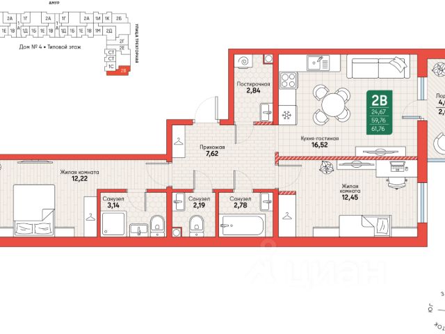 Продаётся 2-комн. квартира площадью 44,16 кв.м на 3 этаже 10 этажного дома (Корпус 10, Секция 1) проекта ПИК Северный парк. Светлый просторный подъезд на уровне земли, функциональная планировка, большие окна, без отделки. "Северный парк" - жилой квартал в развитом Железнодорожном районе Хабаровска с закрытыми дворами-парками, школой, детским садом и спортхабом. До центра города получится добраться за 10 минут на автомобиле. "Северный парк" возводится на пересечении улиц Воронежской и Совхозной, в 10 минутах езды от центра Хабаровска. В проекте будет 30 корпусов. Входы в подъезды "Северного парка" мы сделаем на уровне земли для комфортного перемещения по территории квартала любым способом: пешком, на самокате или с коляской. Благодаря панорамному остеклению, которое пропускает много естественного света, первые этажи будут просторные и светлые. В квартирах предусмотрены большие окна, застеклённые балконы и лоджии - будет светло и уютно даже зимой. Все квартиры сдаются с предчистовой или полной отделкой на выбор. В каждом дворе будет парк - тихое приватное пространство для жителей, где красиво и уютно в любое время года и можно расслабиться после рабочего дня. Через весь квартал протянется широкий пешеходный бульвар с велодорожками, велопарковками, зонами для отдыха, детскими и спортивными площадками. В "Северном парке" будет всё необходимое для комфортной жизни: на первых этажах откроются магазины, кафе и полезные сервисы. Внутри жилого квартала запланировано строительство школы и детского сада. Для удобства жителей предусмотрены многоуровневые паркинги, индивидуальные кладовые и колясочные. Артикул 988947 (Застройщик ООО "СЗ ПРОЕКТ СТРОЙ") 2-комнатная квартира с двумя санузлами в Хабаровском крае.