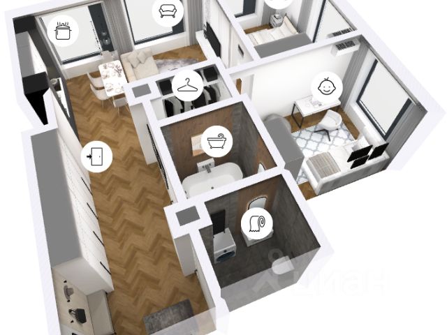 Очень удобная планировка — две раздельные комнаты, большая прихожая с множеством мест для хранения, просторная кухня мечта любой хозяйки, огромная угловая Лоджия в 11 кв.м с Шикарным видом на Амур, Арену Ерофей и набережную БРОСКО Мола, закаты - рассветы, Салюты не выходя из Дома!