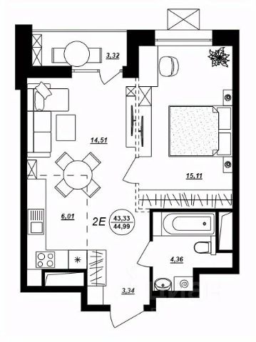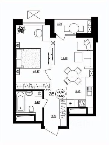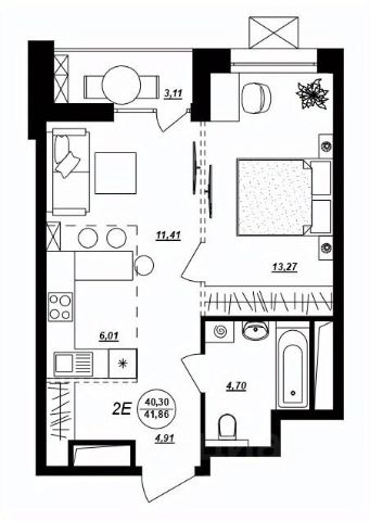 • Квартира на 13 этаже площадью 57,6 кв. м