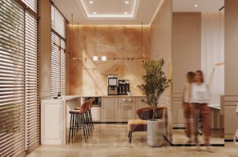 Продуманные общественные пространства для резидентов: зал для йога, детская комната с тьютором, коворкинг, тренажерный зал. Премиальная консьерж—служба: помощь в решении всех бытовых вопросов: прачечная, выгул собак, доставка продуктов и пр.