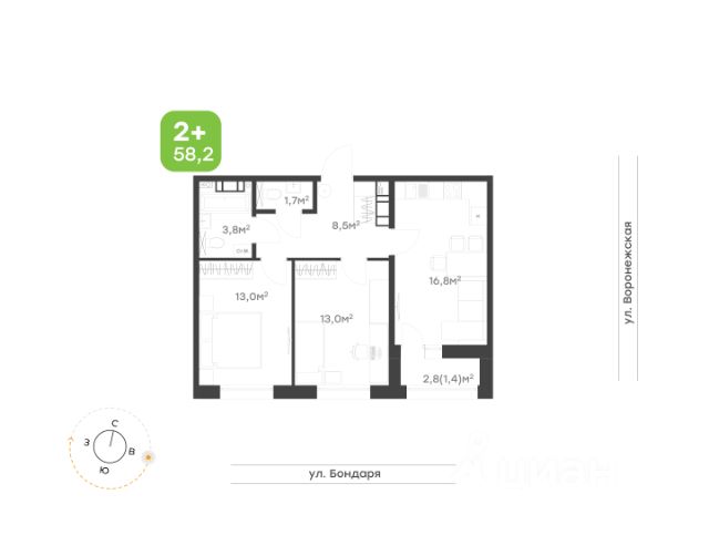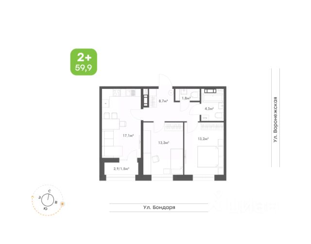 Просторная 2-комнатная квартира. • Вместительный коридор 8,2 кв.м. с зоной хранения позволит удобно разместить вещи; • Классическая кухня с местом для обеденной зоны станет прекрасным местом для уютных вечеров; • Светлая гостиная с выходом на лоджию - идеальное место для отдыха; • Спальная комната с местом для хранения; • Совмещенный санузел 4 кв.м. подарит дополнительное удобство; • Прекрасное решение для современной жизни.