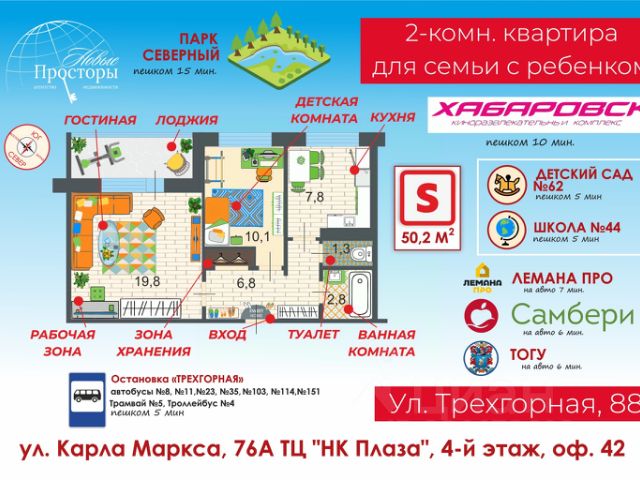 2-х комнатная квартира расположенная в самом центре Краснофлотского района с отличной инфраструктурой по ул.Трехгорная д.78.Дом кирпичный.Комнаты раздельные,сан.узел раздельный,глубокая застекленная лоджия.Квартира в отличном состоянии:во всей квартире установлены качественные натяжные потолки,заменены все сантехнические трубы и система отопления(новые стояки и радиаторы).В зале установлена сплит система.Новые межкомнатные и входная двери.На большой просторной кухне установлен кухонный гарнитур,плита,вытяжка.В прихожей установлен вместительный шкаф для верхней одежды.Квартира в собственности больше 10 лет,без каких либо обременений,запретов и задолженностей.Отличное расположение дома:практически во дворе дома расположена школа,детский сад,в непосредственной близости торговые центры Близкий,Пеликан,Амбар,Пятерочка,Рынок Депо-2,Сбербанк,Втб,Аптеки,кинотеатр Хабаровск,Фитнес Клуб,остановка автобуса и трамвая.Дополнительно оплачиваются комиссия агентства 30000 рублей. Купить 2-комнатную квартиру на улице Трехгорная в городе Хабаровск.