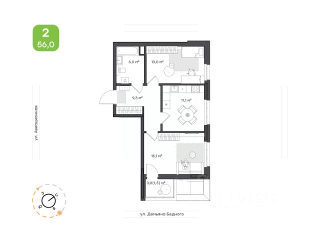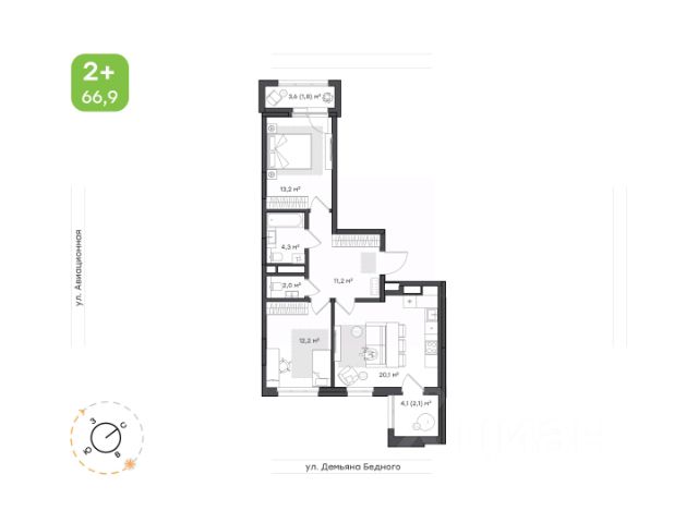 2+ квартира для семьи с ребёнком; Просторная кухня-гостиная с выходом на лоджию; Гардеробные ниши позволят не тратиться на шкафы и комоды и сохранить полезную площадь; Широкая лоджия станет отличным местом для релакса или хранения; Два санузла