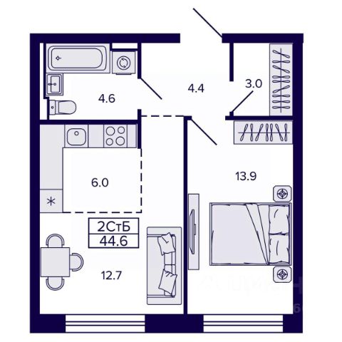 Квартира расположена на 8-ом этаже в 9-ти этажном доме, общей площадью 48,4 м2. Дом кирпичный, квартира очень тёплая, солнечная (окна во двор), с отличной звукоизоляцией, что очень важно! В квартире комфортный микроклимат, летом прохладно, а зимой тепло, благодаря кирпичным стенам. В квартире отличная планировка с двумя изолированными жилыми комнатами, которые разделены кухней. Одна жилая комната с выходом на лоджию, которая очень просторная 6 метров в длину, вместительная кухня 8,6 м2, раздельные ванная комната и сан. узел, что очевидно комфортно, просторный коридор. Лоджия остеклена, выполнена внутренняя отделка, все окна пластиковые. В доме чистые, ухоженные лестничные площадки и входная группа. Порядочные соседи.