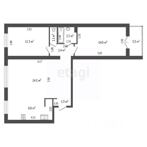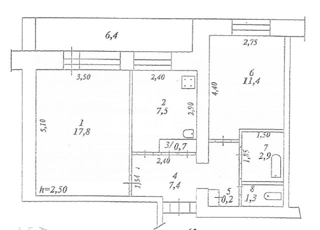 3-комнатаная квартира, общей площадью 59,9 м2 в самом центре Дземог!