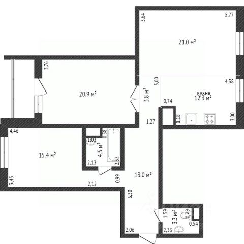 Высокие потолки 2,85-3,15 м и большие окна до 1,8 м