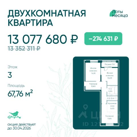 Продаётся 2-комн. квартира площадью 44,16 кв.м на 3 этаже 10 этажного дома (Корпус 10, Секция 1) проекта ПИК Северный парк. Светлый просторный подъезд на уровне земли, функциональная планировка, большие окна, без отделки. "Северный парк" - жилой квартал в развитом Железнодорожном районе Хабаровска с закрытыми дворами-парками, школой, детским садом и спортхабом. До центра города получится добраться за 10 минут на автомобиле. "Северный парк" возводится на пересечении улиц Воронежской и Совхозной, в 10 минутах езды от центра Хабаровска. В проекте будет 30 корпусов. Входы в подъезды "Северного парка" мы сделаем на уровне земли для комфортного перемещения по территории квартала любым способом: пешком, на самокате или с коляской. Благодаря панорамному остеклению, которое пропускает много естественного света, первые этажи будут просторные и светлые. В квартирах предусмотрены большие окна, застеклённые балконы и лоджии - будет светло и уютно даже зимой. Все квартиры сдаются с предчистовой или полной отделкой на выбор. В каждом дворе будет парк - тихое приватное пространство для жителей, где красиво и уютно в любое время года и можно расслабиться после рабочего дня. Через весь квартал протянется широкий пешеходный бульвар с велодорожками, велопарковками, зонами для отдыха, детскими и спортивными площадками. В "Северном парке" будет всё необходимое для комфортной жизни: на первых этажах откроются магазины, кафе и полезные сервисы. Внутри жилого квартала запланировано строительство школы и детского сада. Для удобства жителей предусмотрены многоуровневые паркинги, индивидуальные кладовые и колясочные. Артикул 988947 (Застройщик ООО "СЗ ПРОЕКТ СТРОЙ") 2-комнатная квартира в Хабаровском крае.
