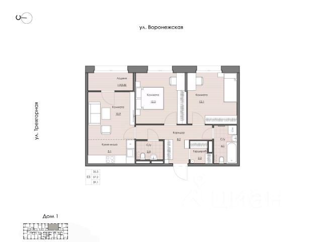 Квартира находится в корпусе 1. Дом монолитный, одноподъездный, высотой 22 этажа. На этаже 5 квартир. В подъезде 2 пассажирских и 1 грузовой лифт. Окончание строительства - 3 квартал 2027 года. Оформление сделки по договору купли-продажи.