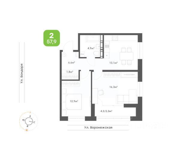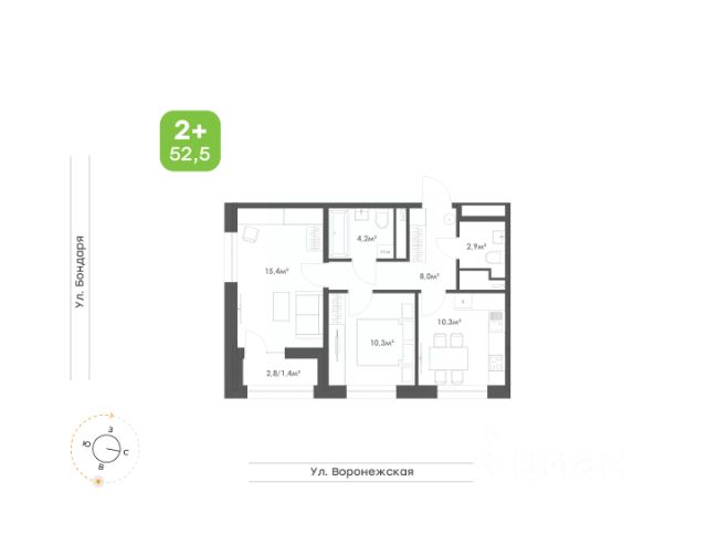 Двухкомнатная квартира с европланировкой в ЖК "Green 2" на 1 этаже. Квартира без отделки, полностью готова к ремонту. Общая площадь: 52.3 кв.м., жилая: 29.1 кв.м., суммарная площадь гостиной-столовой с кухонной зоной: 23.4 кв.м. Европланировка, кухня-гостиная - идеальный вариант для тех, кто любит часто принимать гостей. Угловая квартира, идеально подойдет любителям тишины и панорамных видов. В квартире один совмещенный санузел. Высота потолков 2.7 м.