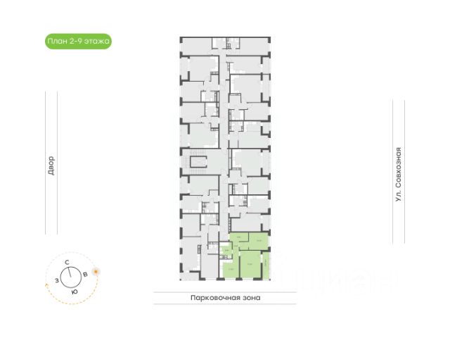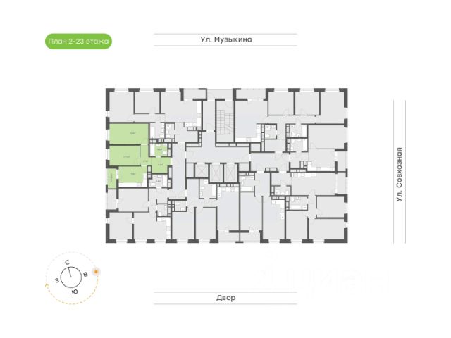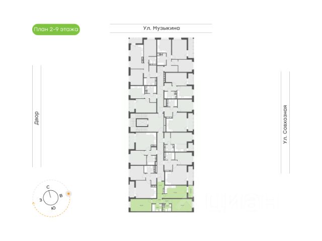 Двухкомнатная квартира евроформата • Прихожая 6,6 кв.м с нишей под гардероб; • Две спальных комнаты правильной геометрической формы. В каждой комнате найдется зона для хранения. Родительская спальня с выходом на лоджию; • Большая кухня-гостиная с обеденной зоной у окна для общения и отдыха всей семьи; • Вид из окон квартиры открывается во двор; • Два совмещенных санузла.