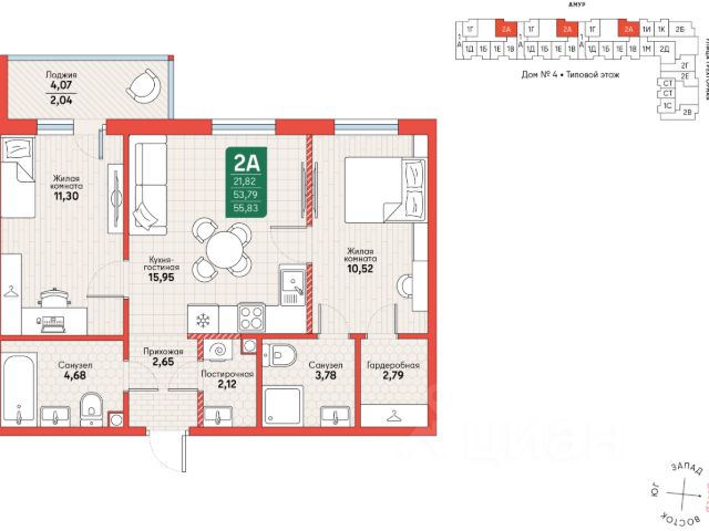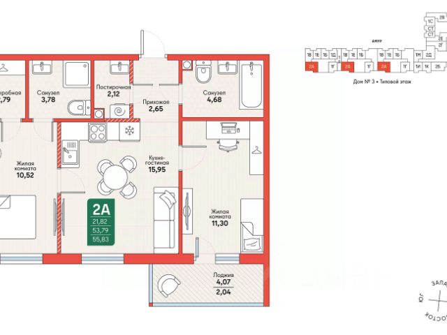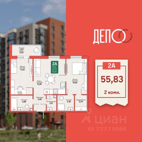 СОВРЕМЕННОЕ ЖИЛЬЕ В СЕРДЦЕ СЕВЕРНОГО Новый проект от застройщика жилого комплекса "Нордик": снова яркая архитектура, продуманный и безопасный двор, увеличенные оконные проёмы и светлые квартиры по доступным ценам В СЕРДЦЕ СЕВЕРНОГО. Преимущества района. Новый жилой комплекс "Депо" расположен в районе пересечения улиц Трёхгорная и Тихоокеанская. Отсюда удобный выезд на две главные артерии Северного района - улицу Тихоокеанскую и Воронежское шоссе. Вокруг "Депо" сформирована развитая инфраструктура для комфортной жизни - рядом четыре детских сада, две гимназии и средняя школа, больница, аптеки, почтовые и банковские отделения, магазины и кафе. Совсем рядом расположены продуктовый гиперамаркет "Самбери", гипермаркет строительных материалов, товаров для ремонта и для дома "ЛеманаПро" и АЗС "ННК". Современная двухкомнатная квартира площадью 55,83 м² с продуманной планировкой и удобным расположением помещений. Основные зоны: * Жилая комната (21,82 м²) — просторная комната, идеально подходящая для спальни или гостиной. * Кухня-гостиная (15,95 м²) — функциональная зона для приготовления пищи и отдыха. * Вторая жилая комната (10,52 м²) — компактная комната, которая может быть использована как детская, кабинет или гостевая. * Санузел (3,78 м²) — удобный санузел с возможностью установки ванны или душевой кабины. * Постирочная (2,12 м²) — дополнительное пространство для хранения вещей и бытовой техники. * Гардеробная (3,78 м²) — вместительная зона для хранения одежды и аксессуаров. * Прихожая (2,65 м²) — удобная зона для хранения верхней одежды и обуви. * Лоджия (4,07 м²) — дополнительное пространство для отдыха или работы. Преимущества: Просторная жилая комната Функциональная кухня-гостиная Две жилые комнаты для разных целей Гардеробная и постирочная для удобства Лоджия для отдыха Для кого идеально: * Семьи с детьми * Молодые пары * Инвесторы (перспективный объект для аренды)