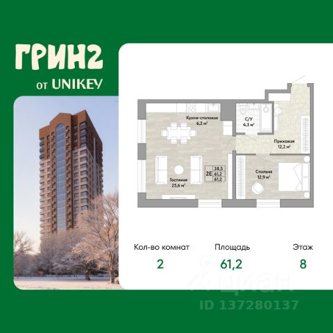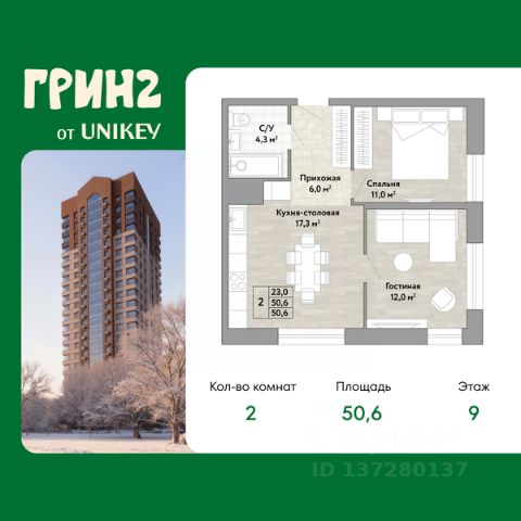 Продается 2-комн. квартира в ЖК "Грин 2" на 12 этаже. Квартира без отделки, после выдачи ключей можно делать ремонт. Общая площадь: 50.6 кв.м., жилая: 23 кв.м., площадь просторной кухни-столовой: 17.3 кв.м. Угловая квартира, идеально подойдет любителям тишины и панорамных видов. В квартире один совмещенный санузел. Высота потолков 2.7 м. Квартира находится в корпусе 2. Дом монолитный, одноподъездный, высотой 22 этажа. На этаже 8 квартир. В подъезде 2 пассажирских и 1 грузовой лифт. Окончание строительства - 3 квартал 2027 года. Оформление сделки по договору купли-продажи. Грин 2 это жилой квартал, который объединяет в себе экологичность, здоровый образ жизни и спорт. Вы живёте в экологичном, тихом квартале — но при этом никогда не чувствуете себя "отрезанным от города". Вы легко добираетесь до центра, работы и ключевых точек города — на машине или общественном транспорте. Остановка находится в 6 минутах ходьбы — вам не нужно совершать длительных походов для того, чтобы пользоваться общественным транспортом. Концепция ЖК предполагает максимальную уединенность, тишину и безопасность. Всё необходимое для ремонта, обустройства и повседневных покупок — в шаговой доступности: Лемана Про — легко и удобно делать ремонт или докупать материалы без поездок через весь город. Гипермаркет "Самбери" — полный ассортимент продуктов и товаров для дома под одной крышей. При этом в самом ЖК нет шумной коммерции — значит, во дворе тихо, чисто и безопасно Во дворе каждый житель Грин 2 находит своё пространство: Малыши играют в безопасных песочницах и на горках из экоматериалов — вы спокойны за их безопасность и развитие. Дети постарше лазают по современному игровому комплексу или катаются на памп-треке — отвлекаясь от гаджетов и не выходя за территорию ЖК. Родители и взрослые отдыхают в уединённых зонах релакса или устраивают соседские барбекю-вечера. Все, кто ценит активность, тренируются на спортивных снарядах на открытом воздухе. В каждой башне на первом этаже мы предусмотрели закрытые общественные пространства, которые буду интересны всем жителям нашего комплекса: от самых маленьких до взрослых: - Игровая комната для малышей. Для маленьких жителей Грин 2 мы сделали игровую комнату. Здесь есть стена для рисования мелом, качели и интерактивные элементы для игр. - Лаунж-зона для подростков с диванами, телевизором и приставкой. - Спортзал. Небольшой спортзал на первом этаже дома для занятий кардио, йогой или стрейчингом. - Коворкинг-пространство. Здесь есть доска для записей, уютные кресла, а стол можно использовать для настольного тенниса. - Лаунж-зона на крыше, с которой открывается вид на Амур и лес. #zmDB9S