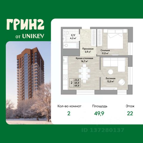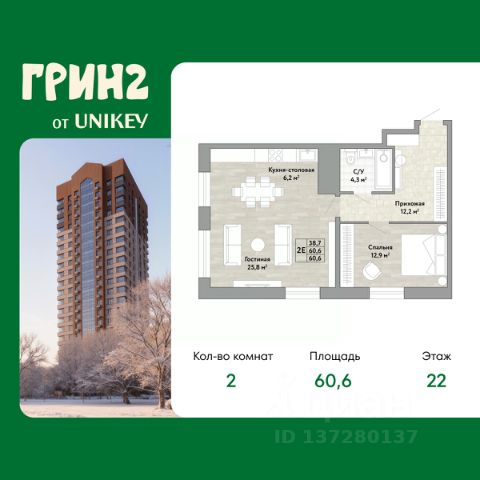 2-комн. квартира в ЖК "Грин 2" на 1 этаже. Квартира без отделки, новый владелец может сделать ремонт по индивидуальному дизайн-проекту. Общая площадь: 58.1 кв.м., жилая: 28.5 кв.м., площадь просторной кухни-столовой: 14.9 кв.м. Угловая квартира, очень светлая, естественная вентиляция при открытии окон. В квартире один совмещенный санузел. Высота потолков 2.7 м. Квартира находится в корпусе 1. Дом монолитный, одноподъездный, высотой 22 этажа. На этаже 5 квартир. В подъезде 2 пассажирских и 1 грузовой лифт. Окончание строительства - 3 квартал 2027 года. Оформление сделки по договору купли-продажи. Грин 2 это жилой квартал, который объединяет в себе экологичность, здоровый образ жизни и спорт. Вы живёте в экологичном, тихом квартале — но при этом никогда не чувствуете себя "отрезанным от города". Вы легко добираетесь до центра, работы и ключевых точек города — на машине или общественном транспорте. Остановка находится в 6 минутах ходьбы — вам не нужно совершать длительных походов для того, чтобы пользоваться общественным транспортом. Концепция ЖК предполагает максимальную уединенность, тишину и безопасность. Всё необходимое для ремонта, обустройства и повседневных покупок — в шаговой доступности: Лемана Про — легко и удобно делать ремонт или докупать материалы без поездок через весь город. Гипермаркет "Самбери" — полный ассортимент продуктов и товаров для дома под одной крышей. При этом в самом ЖК нет шумной коммерции — значит, во дворе тихо, чисто и безопасно Во дворе каждый житель Грин 2 находит своё пространство: Малыши играют в безопасных песочницах и на горках из экоматериалов — вы спокойны за их безопасность и развитие. Дети постарше лазают по современному игровому комплексу или катаются на памп-треке — отвлекаясь от гаджетов и не выходя за территорию ЖК. Родители и взрослые отдыхают в уединённых зонах релакса или устраивают соседские барбекю-вечера. Все, кто ценит активность, тренируются на спортивных снарядах на открытом воздухе. В каждой башне на первом этаже мы предусмотрели закрытые общественные пространства, которые буду интересны всем жителям нашего комплекса: от самых маленьких до взрослых: - Игровая комната для малышей. Для маленьких жителей Грин 2 мы сделали игровую комнату. Здесь есть стена для рисования мелом, качели и интерактивные элементы для игр. - Лаунж-зона для подростков с диванами, телевизором и приставкой. - Спортзал. Небольшой спортзал на первом этаже дома для занятий кардио, йогой или стрейчингом. - Коворкинг-пространство. Здесь есть доска для записей, уютные кресла, а стол можно использовать для настольного тенниса. - Лаунж-зона на крыше, с которой открывается вид на Амур и лес. #Z6gZbT