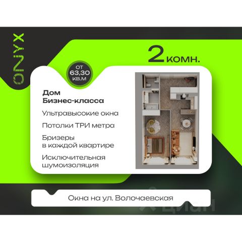 Продаётся 2-комнатная квартира в строящемся доме (ONYX BLACK), срок сдачи: IV-кв. 2027, общей площадью 64.65 кв.м., на 3 этаже. Новый жилой комплекс "ONYX BLACK" от компании "Фемида" расположен по адресу: г. Хабаровск, по ул. Волочаевская.