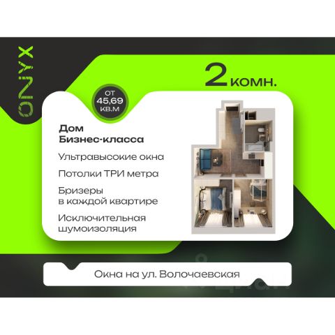 Продаётся 2-комнатная квартира в строящемся доме (ONYX BLACK), срок сдачи: IV-кв. 2027, общей площадью 61.59 кв.м., на 3 этаже. Новый жилой комплекс "ONYX BLACK" от компании "Фемида" расположен по адресу: г. Хабаровск, по ул. Волочаевская.