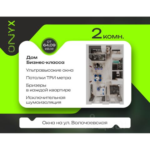 Продаётся 2-комнатная квартира в строящемся доме (ONYX BLACK), срок сдачи: IV-кв. 2027, общей площадью 64.65 кв.м., на 3 этаже. Новый жилой комплекс "ONYX BLACK" от компании "Фемида" расположен по адресу: г. Хабаровск, по ул. Волочаевская.