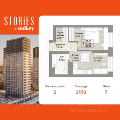 Скидка 50% на отдельное парковочное место. Звоните, наши менеджеры вам все расскажут. Просторная 2-комн. квартира с европланировкой в ЖК "Stories" на 4 этаже. Квартира без отделки, после выдачи ключей можно делать ремонт. Общая площадь: 37.93 кв.м., жилая: 21.51 кв.м., суммарная площадь гостиной-столовой с кухонной зоной: 14.55 кв.м. Европейская планировка, кухня-гостиная - идеальный вариант для тех, кто любит часто принимать гостей. Комнаты изолированные, все окна выходят на одну сторону. В квартире один совмещенный санузел. Высота потолков 2.9 м. Квартира находится в корпусе Башня Интеллект. Дом монолитный, одноподъездный, высотой 22 этажа. На этаже 7 квартир. В подъезде 2 пассажирских и 1 грузовой лифт. Окончание строительства - 2 квартал 2026 года. Оформление сделки по договору долевого участия. 4 монолитные башни по 22 этажа, расположенные на стилобате. Stoies стал лучшим строящимся ЖК на Дальнем Востоке по версии премии Urban Awards Башня REST - это лаундж зона с камином на 1 этаже и Комната для йоги и медитации для жильцов Башня CHILD - это двухуровневая детская комната с игровыми зонами для детей разного возраста Башня INTELLEСT - это библиотека и читальный зал на 1 этаже где жильцы смогут обмениваться прочитанными книгами Башня BUSINESS- это просторная переговорная и небольшие коворкинг зоны для жильцов В концепции жилого комплекса заложены • максимальная забота о детях; • карьерная и деловая активность; • отдых и спокойствие, общение и саморазвитие, которые отражаются в общественных пространствах каждой из башен и придомовой территории Всей территорией и всеми общественными пространствами могут пользоваться все жители проекта независимо от башни в которой живут. В башне Rest любой из резидентов сможет погрузиться в теплую и расслабляющую атмосферу, провести время в приятноѝ компании в кресле у камина или просто насладиться моментом уединения. Также здесь будет отдельное уютное помещение для занятиѝ ѝогоѝ и медитации. Башню Child оценят молодые мамы, семьи с детьми. Для маленьких жильцов оборудована первая в Хабаровске игровая комната в жилом комплексе с зонированием по возрастам. Она предлагает уникальные возможности для развлечения и развития детеѝ разного возраста и темперамента. Башня INTELLECT станет местом, где вы сможете наслаждаться музыкоѝ, обмениваться книгами и пластинками с другими жильцами дома. Библиотека будет центром интеллектуальноѝ и культурноѝ жизни дома. Башня Business создана для предпринимателей и людей с удаленным форматом работы. Здесь будет ресепшн и коворкинг с переговорноѝ комнатоѝ, где комфортно работать и проводить встречи. Это отличная возможность вести дела, не покидая жилой комплекс. #zMduTf