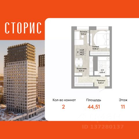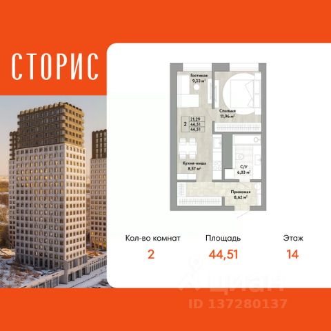 Двухкомнатная квартира с европланировкой от застройщика в ЖК "Сторис" на 2 этаже. Квартира без отделки, полностью готова к чистовой отделке и дальнейшему ремонту. Общая площадь: 44.51 кв.м., жилая: 21.29 кв.м., суммарная площадь гостиной-столовой с кухонной зоной: 17.9 кв.м. Европейская планировка, в просторной кухне-гостиной удобно как готовить, так и отдыхать. Комнаты изолированные, все окна выходят на одну сторону. В квартире один совмещенный санузел. Высота потолков 2.9 м. Квартира находится в корпусе Башня Отдых. Дом монолитный, одноподъездный, высотой 22 этажа. На этаже 7 квартир. В подъезде 2 пассажирских и 1 грузовой лифт. Окончание строительства - 2 квартал 2026 года. Оформление сделки по договору долевого участия. 4 монолитные башни по 22 этажа, расположенные на стилобате. Сторис стал лучшим строящимся ЖК на Дальнем Востоке по версии премии Urban Awards Башня Отдых - это лаундж зона с камином на 1 этаже и Комната для йоги и медитации для жильцов Башня Детство - это двухуровневая детская комната с игровыми зонами для детей разного возраста Башня Интеллект - это библиотека и читальный зал на 1 этаже где жильцы смогут обмениваться прочитанными книгами Башня Бизнес- это просторная переговорная и небольшие коворкинг зоны для жильцов В концепции жилого комплекса заложены • максимальная забота о детях; • карьерная и деловая активность; • отдых и спокойствие, общение и саморазвитие, которые отражаются в общественных пространствах каждой из башен и придомовой территории Всей территорией и всеми общественными пространствами могут пользоваться все жители проекта независимо от башни в которой живут. В башне Отдых любой из резидентов сможет погрузиться в теплую и расслабляющую атмосферу, провести время в приятноѝ компании в кресле у камина или просто насладиться моментом уединения. Также здесь будет отдельное уютное помещение для занятиѝ ѝогоѝ и медитации. Башню Детство оценят молодые мамы, семьи с детьми. Для маленьких жильцов оборудована первая в Хабаровске игровая комната в жилом комплексе с зонированием по возрастам. Она предлагает уникальные возможности для развлечения и развития детеѝ разного возраста и темперамента. Башня Интеллект станет местом, где вы сможете наслаждаться музыкоѝ, обмениваться книгами и пластинками с другими жильцами дома. Библиотека будет центром интеллектуальноѝ и культурноѝ жизни дома. Башня Бизнес создана для предпринимателей и людей с удаленным форматом работы. Здесь будет ресепшн и коворкинг с переговорноѝ комнатоѝ, где комфортно работать и проводить встречи. Это отличная возможность вести дела, не покидая жилой комплекс. #zmeSec
