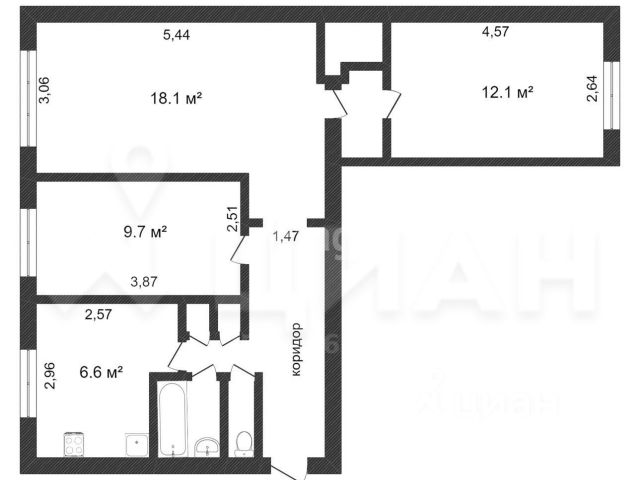 -54,2 кв.м. общая площадь